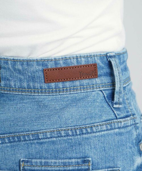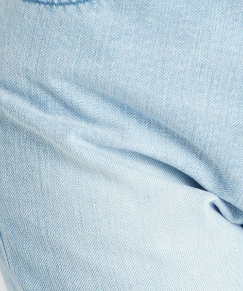 【素材】 YANUK定番のストレッチデニムで、肉感を拾いにくい適度なハリ感がありながらも柔らかい穿き心地で、美しいレッグラインを実現しています。スカッとした爽やかさにこだわったクリアカラーは、クリーンなUSED加工がポイントです。綺麗なサックスカラーと色落ち部分のホワイトとのコントラストが効いた爽快な1本。股上が深めだとお腹回りの間延び感が気になりますが、ヒゲやスリがしっかり入っているので立体感があり、気になるお腹回りをカバーしてくれます。ヒップのハイライトを少し高めに入れることで、後姿をスタイルアップして見せてくれます。