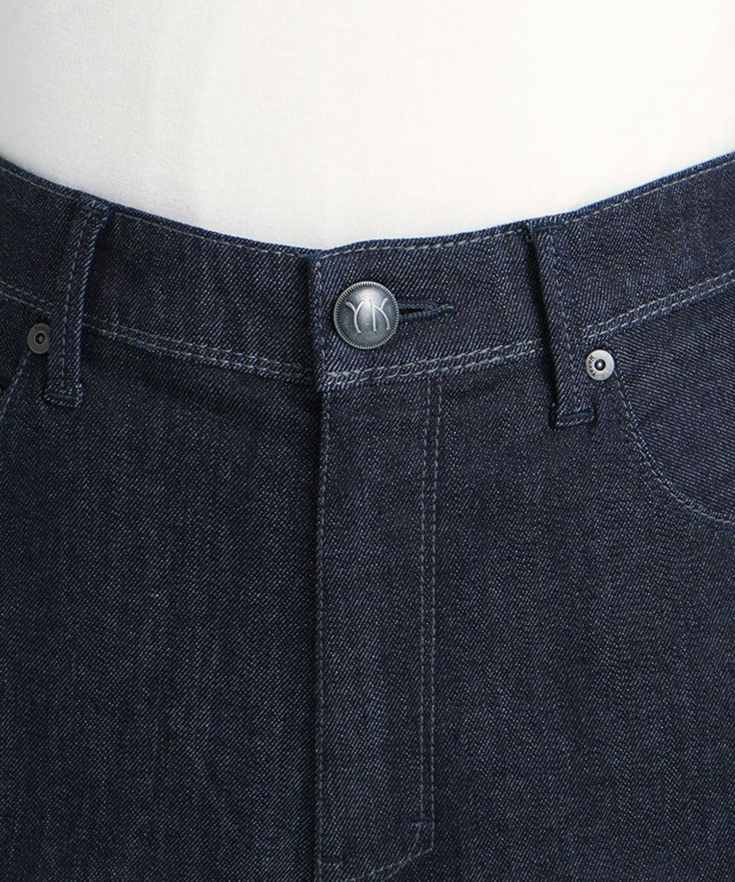 ベルト裏に色落ちしない生地を使用しています。トップスをインしたときに色落ちが軽減できます。またヒップラベルが黒になっているため、よりきれいめな印象を与えてくれます。インディゴの深みが上品かつ、生地のしなやかさがワンウォッシュとは思えない穿き心地に虜になる1本です。