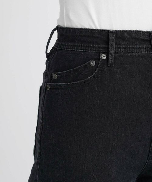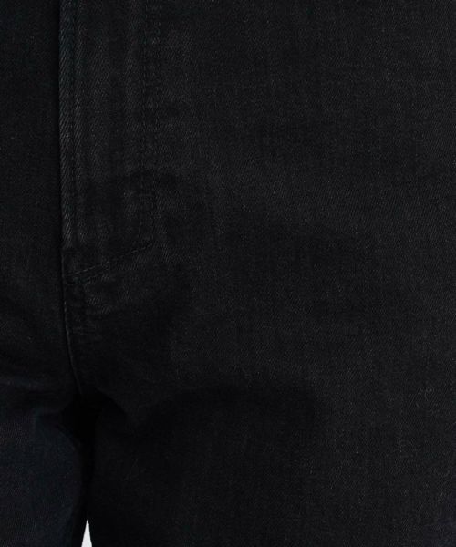 ブラックデニムに加工感を施すことで、デニムならではのアタリ感が生まれ、のぺっとした印象にならないブラックジーンズです。黒のタテ糸×黒のヨコ糸で織られたブラックデニムを使用しているので、いい意味で加工感が付きすぎず、上品な仕上がりとなっています。