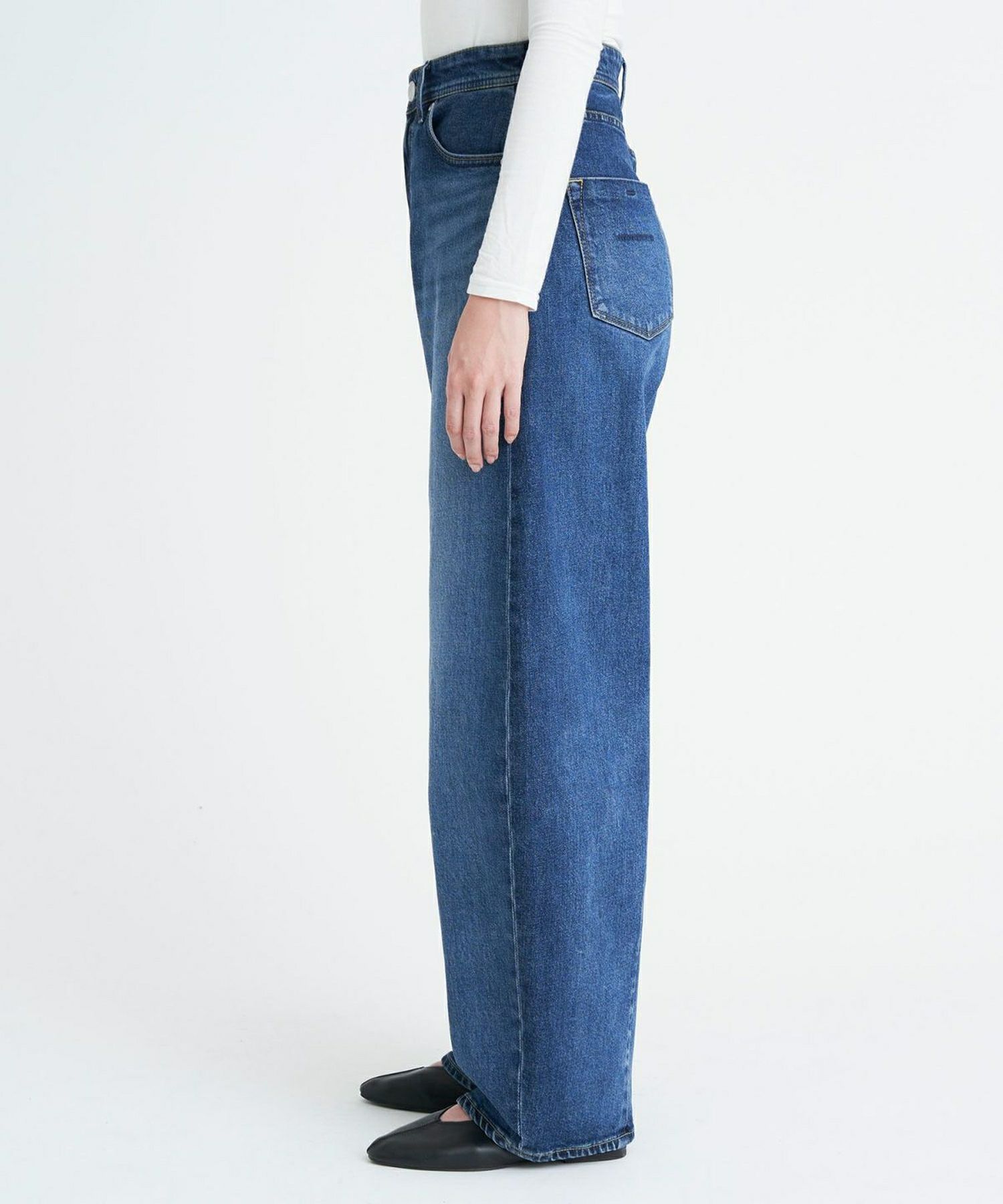 素材感 : ストレッチ性のある生地で、しなやかに伸びてくれるため長時間の着用も過ごしやすいデニムです。