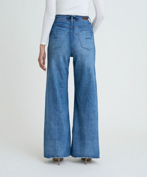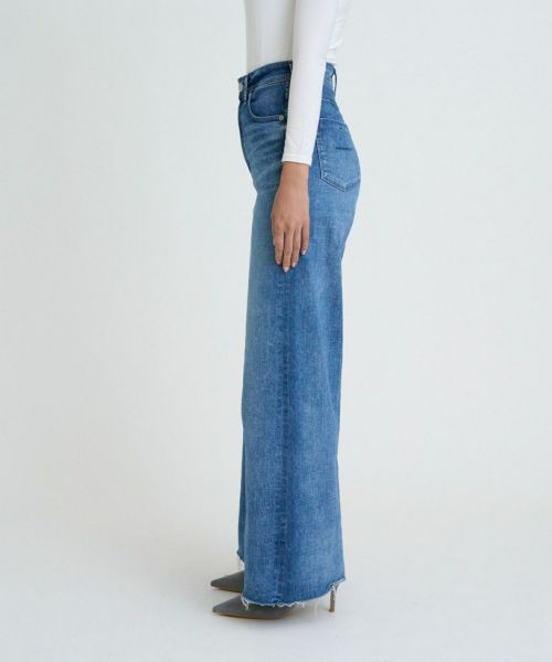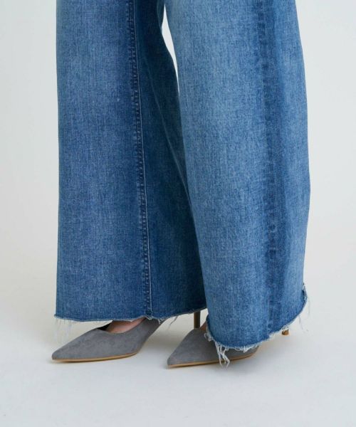 【デザイン】 YANUK(ヤヌーク)のデニム。腰回りはフィットさせながら、裾にかけてゆったり広がっているフレアシルエット。フラットなシューズに合わせてもバランスよく穿けるワイドシルエットで、下半身にボリュームをもたせたいときにもオススメで、だらしなくならず、バランスよく上品に穿けるシルエットです。長めのレングスなのでヒールなども相性が良く、スタイルUPも狙えるシルエットです。