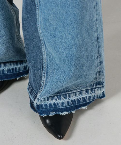 【デザイン】STELLA McCARTNEY(ステラ マッカートニー)のデニム。 洗練とエフォートレスの絶妙なバランスを叶えた一本。ミッドライズで腰まわりはすっきりと、そこからゆったりと落ちるストレートレッグがスタイルに自然な抜け感を与えてくれます。全体に施されたヴィンテージウォッシュとダメージ加工が、こなれ感を演出しながらもラグジュアリーなムードをキープ。カジュアルな印象の中にも芯のあるモード感を宿した、STELLAらしい存在感のある一本です。トップスにはあえて女性らしいシルエットのブラウスやコンパクトなカットソーを合わせ、足元にシュプール キトゥンヒールを添えると、都会的で洗練されたスタイルが完成します。