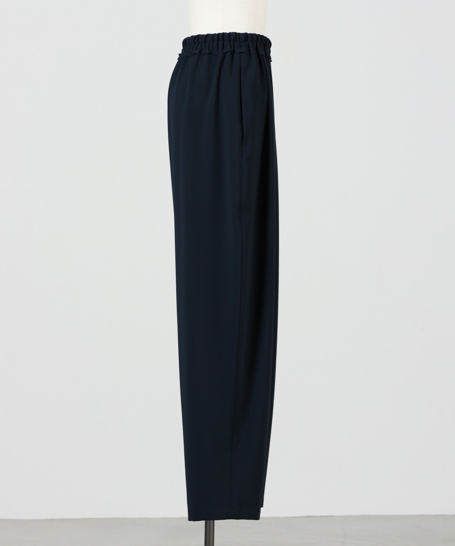 【デザイン】ENFOLD(エンフォルド)のパンツ。24PSで展開したENFOLDの定番リラックスゴムワイドPTとEgg PTを足したようなデザインのパンツがPEライトジョーゼットで登場。 リラックスゴムワイドの履きやすさはそのままに脇のシルエットがEgg PTのように丸みのあるものに。 ウエストの華やかなゴムデザインもポイントです。