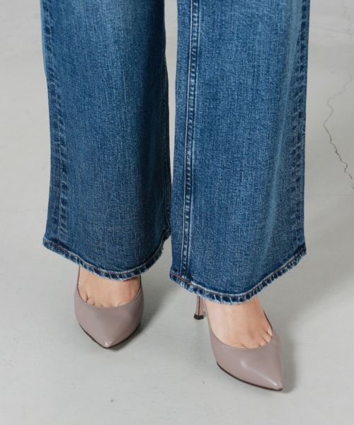 【デザイン】 RED CARD TOKYO(レッドカードトーキョー)ののデニムパンツ。スラッシュポケットを採用したフロント周りがすっきりとしたデザインの一本で、裾にかけてほどよく広がるフレアシルエット。やや長めのレングスとなっており、脚長効果抜群のアイテムです。