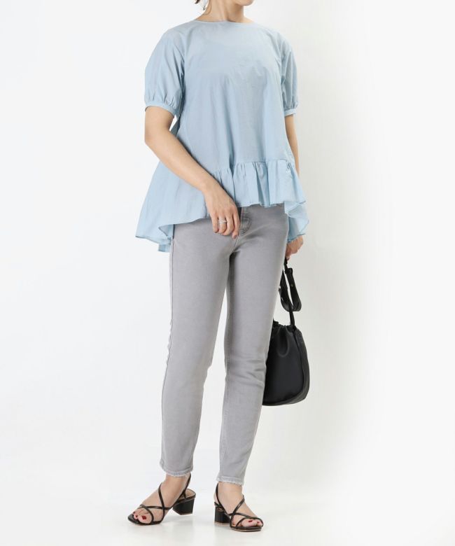 【スタッフ chi.】 身長:162cm/体型:ウェーブ/年齢:20代/普段サイズ:XS/着用サイズ:22 素材感:他のカラーより少しハリのある素材感。 サイズ感:スキニー見えするスッキリしたテーパードで、9分丈に設定されたレングスが絶妙な美しいシルエットをもたらしてくれます。 おすすめポイント:なんとも言えないマットな絶妙なカラーが魅力。脚を綺麗に細く見せてくれるシルエットで、リピート率もNO.1♡ 私も虜です♡