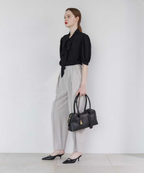 フロントのワンタックが腰回りをすっきりと見せ、上品な印象をプラスします。