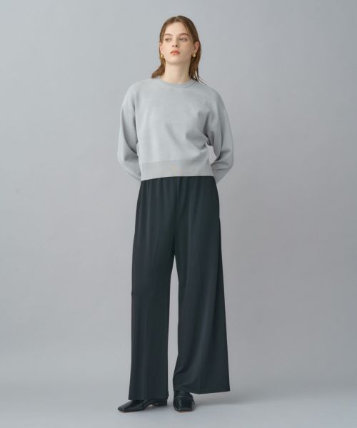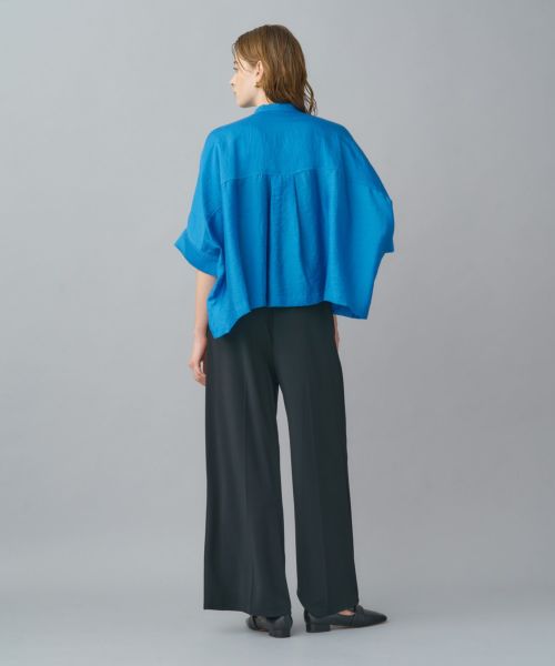 身体のラインを拾いにくいワイドシルエットとさらっとした素材で、軽やかな着用感を実現。落ち感がありながら程よいボリューム感で、リラックス感と上品さを両立しています。