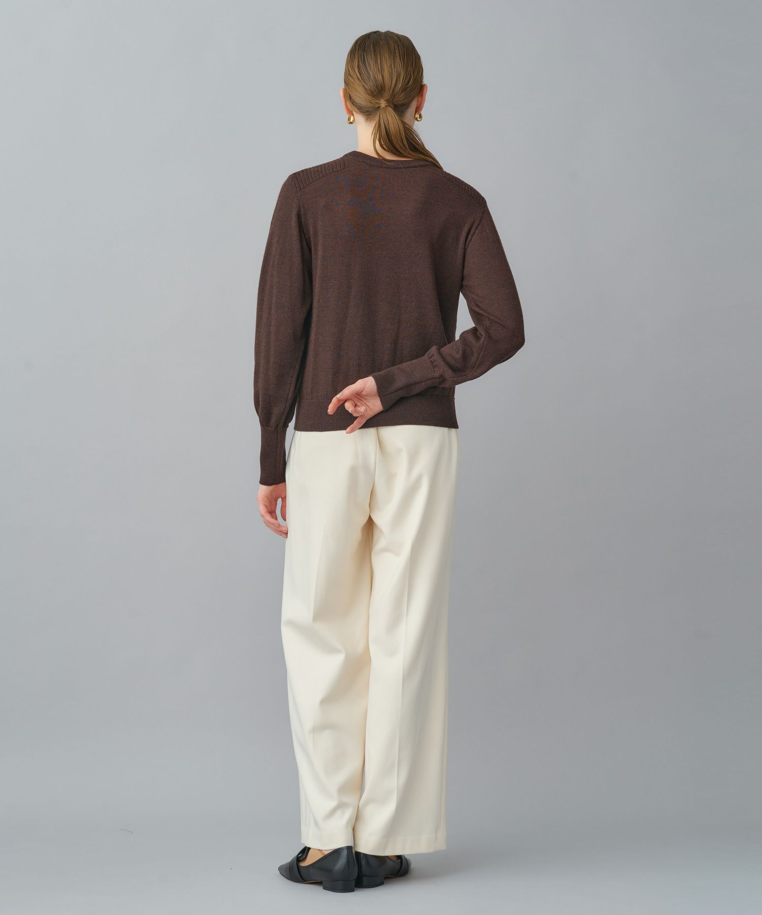 すっきりとしたセミワイドシルエットで、きちんと感と動きやすさを両立。太すぎず細すぎない絶妙なラインにセンタープレスを施し、脚をまっすぐ美しく見せる設計です。ウエストはセンターバックのみゴム仕様で、見た目のきちんと感を損なわず長時間の着用でも快適。オフィススタイルから日常のカジュアルまで幅広く対応します。