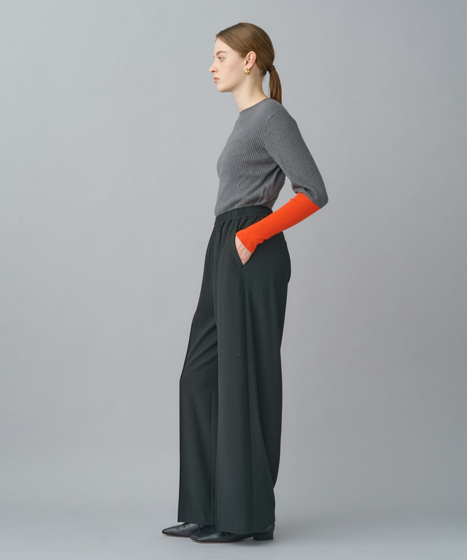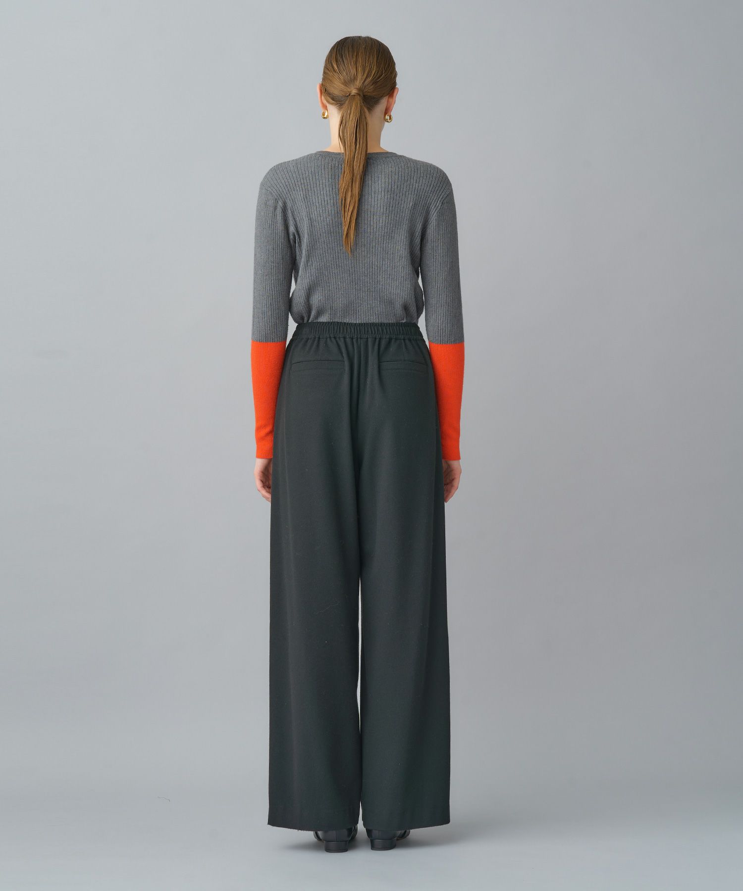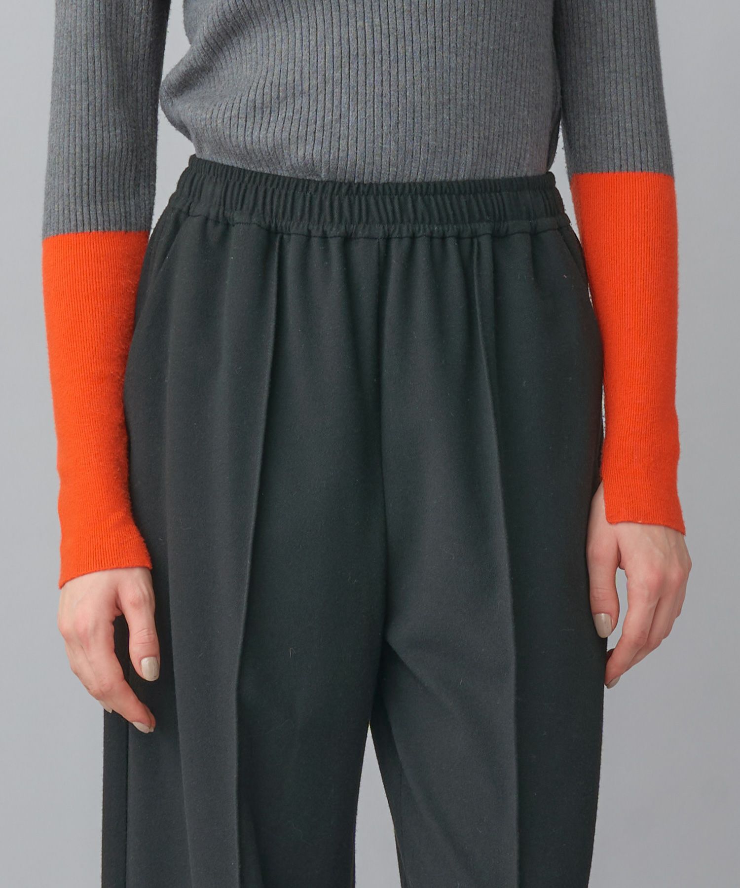 ウールのような暖かみを持ちながら、驚くほど軽く柔らかな穿き心地。ウエストはゴム仕様でストレスフリー。忙しい日常にも寄り添う、頼れる1本です。