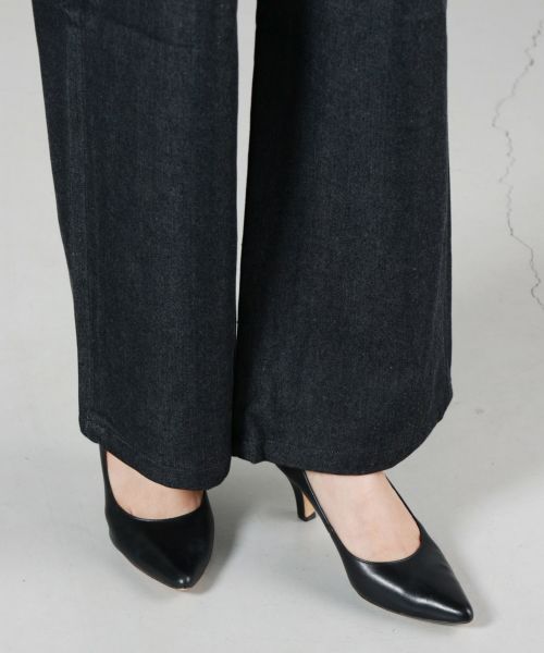 素材感:硬めに見えながら軽さのある生地感で着心地の良いデニム素材。