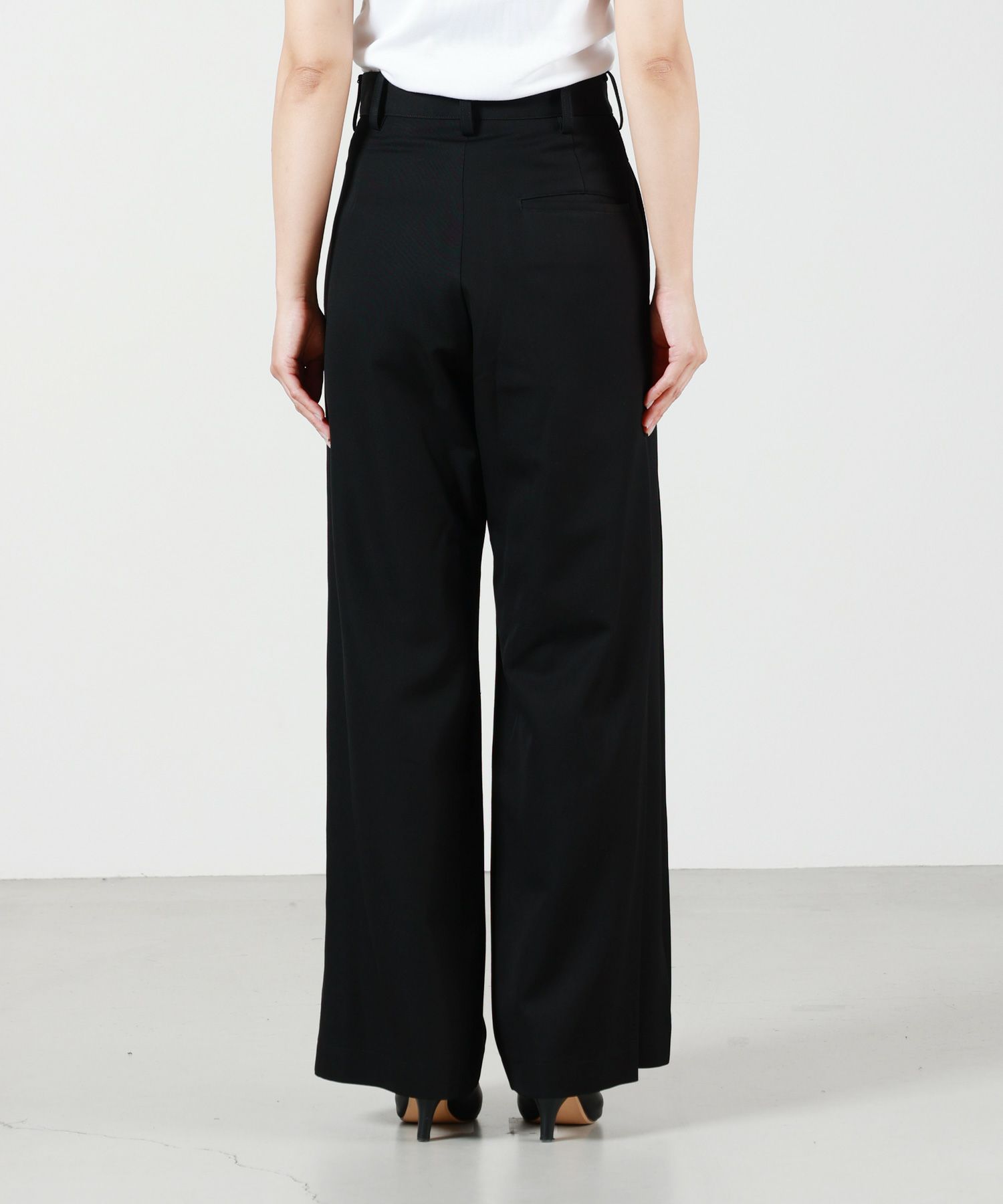 【デザイン】UJOHのスリットフレアパンツ。オフスケールや様々な加工の組み合わせにより、エレガントでクリアな表情に仕上がっています。 裾の重なりあったタックが脚をすらっと見せてくれるデザインです。ディテールも極限にシンプルなシルエット勝負のパンツです。