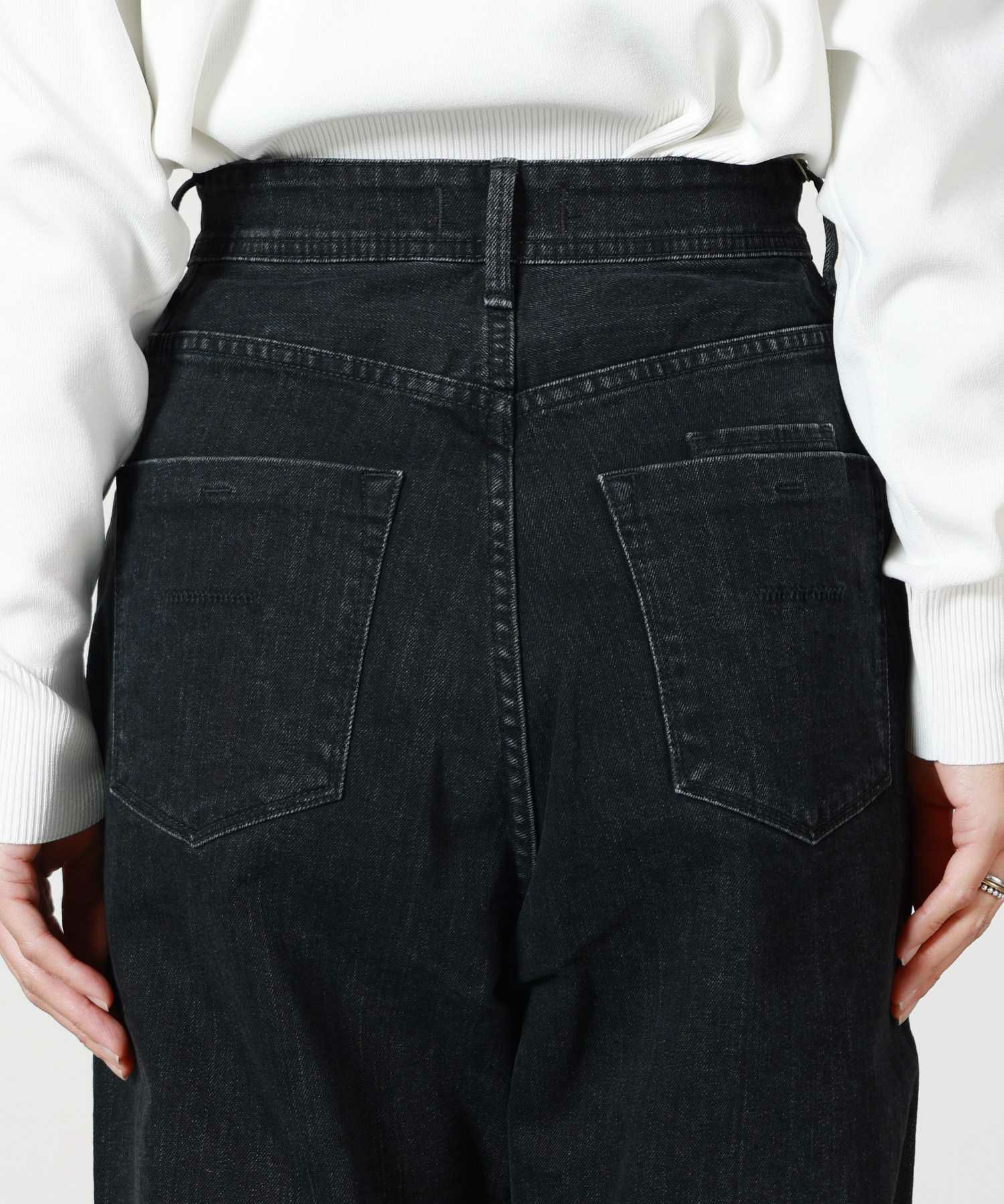 おすすめポイント:今季トレンドのウォッシュの効いたブラックジーンズ×ルーズフィット。 ウエストの華奢さを強調するシルエットが特徴です。