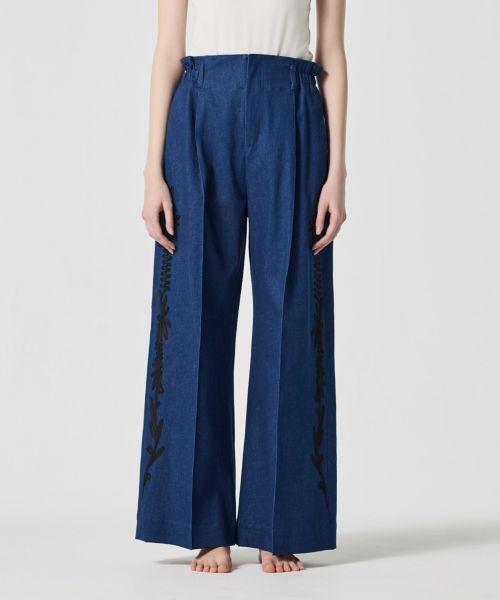 刺繍で魅せる、シルエット美が際立つワイドパンツ