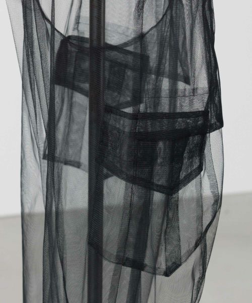 【素材】柔らかくしなやかなチュール素材は、軽量で肌触りがよく、適度なハリ感が美しいシルエットをキープ。透け感がありながらも上品さを保つ仕上がりで、コーディネートにエレガントなアクセントを添えます。