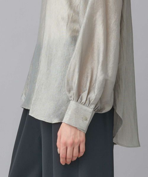 シボ感のあるビンテージライクなシャイニー素材を使用。 ほのかな透け感が軽やかで、光り過ぎずコーディネートに取り入れやすいのが魅力です。