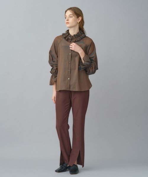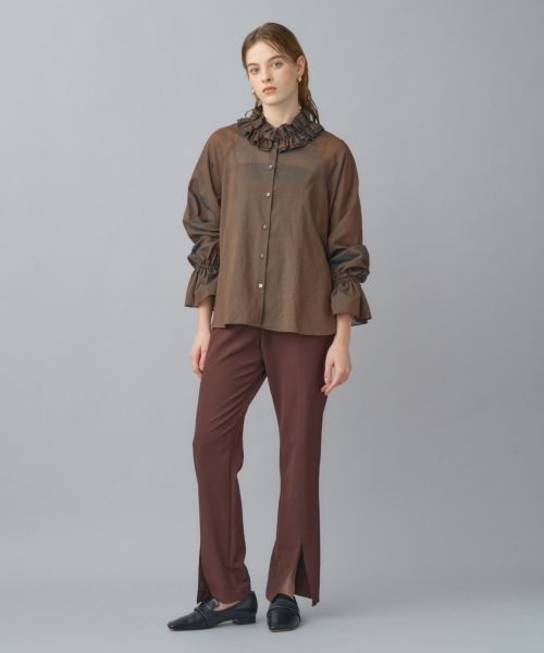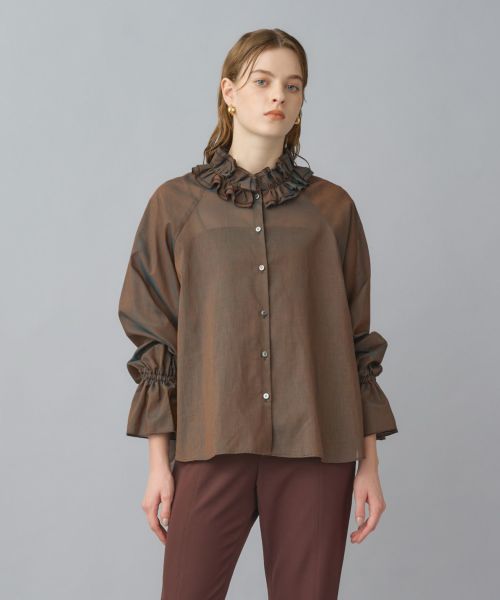 存在感フリルで華やぎをまとうカラーフリルボイルブラウス