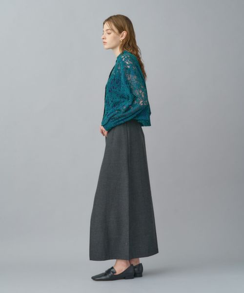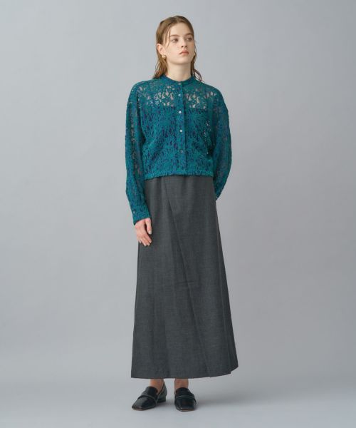 甘さのあるレース素材にシャツカラーを掛け合わせることで、可憐さの中にモードなニュアンスを添えました。
