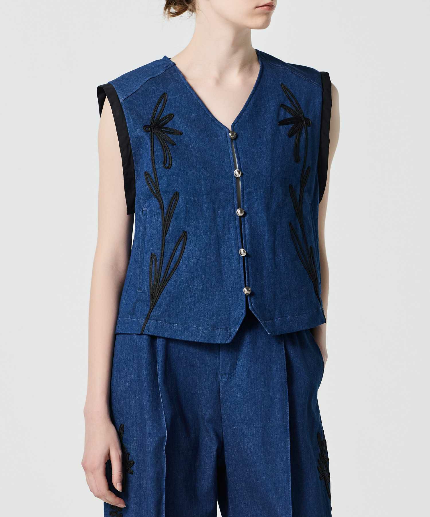 LOKITHOらしい美意識が宿る、コード刺繍をあしらったベスト。