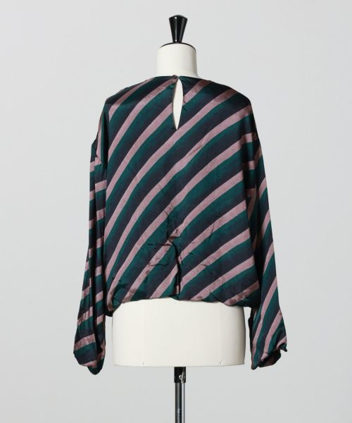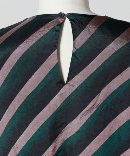 【デザイン】DRIES VAN NOTEN(ドリス ヴァン ノッテン)のブラウス。ストライププリントがアートピースのような存在感を放ちます。ぜいたくな生地使いが魅せるボリューム感は構築的で、抜け感と存在感がリュクスモードなブラウス。ボトム次第でドレッシーからカジュアルのミックスコーデまで幅広い活躍が期待できそう。