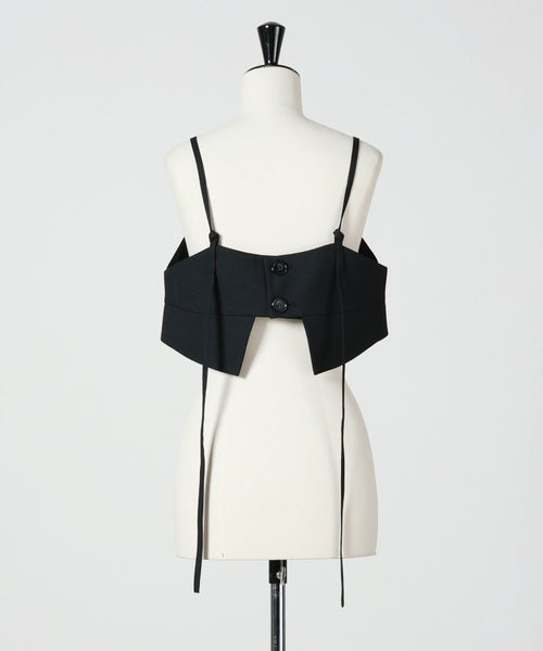 【デザイン】ENFOLD(エンフォルド)のビスチェ。レイヤードスタイルに取り入れやすい、キャミソールタイプのデザインパーツです。肩紐は長さ調整が可能で、体型や合わせるインナーに応じてフィット感を調整できる仕様。さらに、バスト周りには調節ボタンを備え、厚手のニットの上からでも無理なく着用できます。シンプルなトップスに重ねるだけで、装いに立体感と奥行きをプラス。ワイドTRパンツやZigzagスカートとのセットアップスタイルもおすすめです。