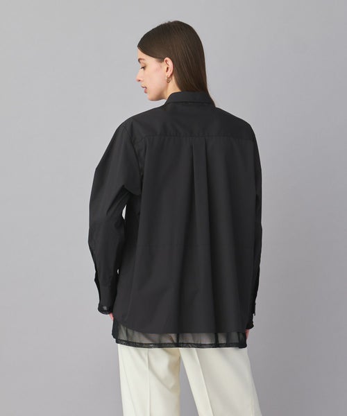 異素材のコントラストが映えるロングスリーブチュールシャツ