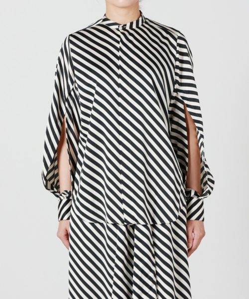 【HYKE(ハイク)】 STRIPE HAMMER SATIN BLOUSE
