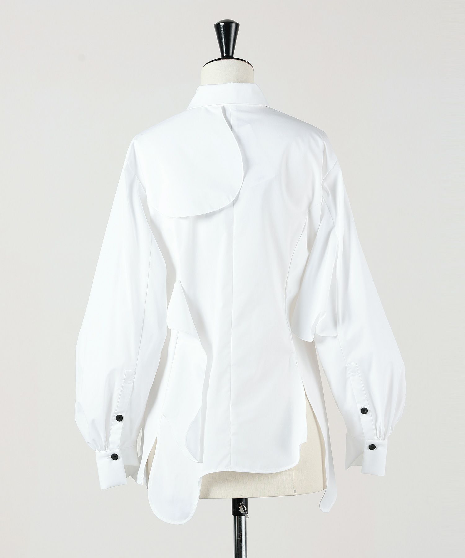 デコラティブなWaveディティールを散りばめたシャツです。ウエストの位置からふわっと広がるシルエットで女性らしい印象に。動くたびにゆらゆら揺れるWaveがコーディネートにアクセントを与えてくれます。レイヤードをしても素敵なスタイリングになるようアシンメトリーに施したWaveヘムもENFOLDらしいポイントです。