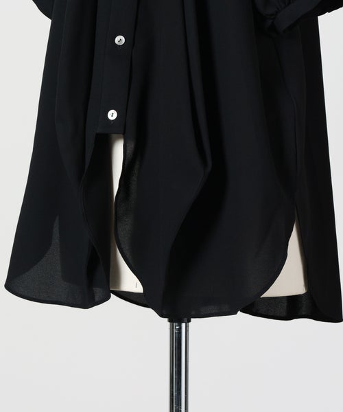 【デザイン】ENFOLD(エンフォルド)のシャツ。身頃の切り替えから飛び出すように設計された袖と、丸みを帯びた立体的なシルエットが特徴で、シンプルな中に強い存在感を放ちます。センターフロントをやや短めに設定されており、自然な抜け感と軽やかなバランスを演出します。1枚でスタイリングが決まるデザイン性の高さが魅力で、モード感のある着こなしを叶える主役アイテムです。