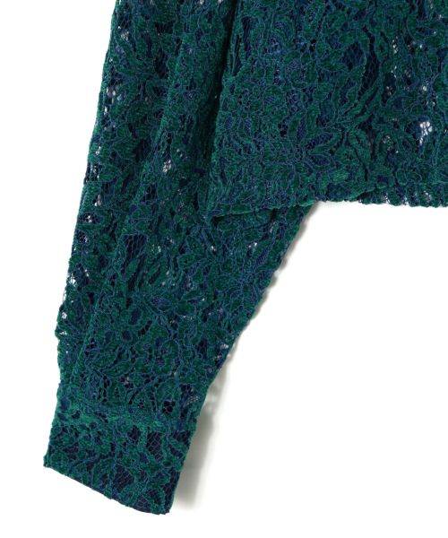 甘さのあるレース素材にシャツカラーを掛け合わせることで、可憐さの中にモードなニュアンスを添えました。