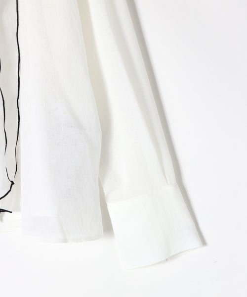 【素材】ポリエステル100%を使用。マルチフィラメントのポリステルを使用し甘く織り上げたシアーガーゼ素材。軽さと透明感に加えてナチュラルな表情が特徴です。