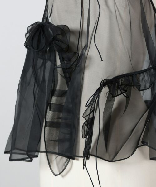【素材】オーガンジーを使用した100%シルク素材。軽やかで透け感のある繊細な質感が特徴で、纏うだけで洗練された雰囲気を漂わせます。さらりと柔らかく肌離れがよく、動きに合わせてふわりと広がる表情が魅力。華やかさがありつつも軽快な着心地を叶え、レイヤード次第で印象を変えられる素材感です。高級感のある光沢が、シンプルなコーディネートも格上げしてくれます。