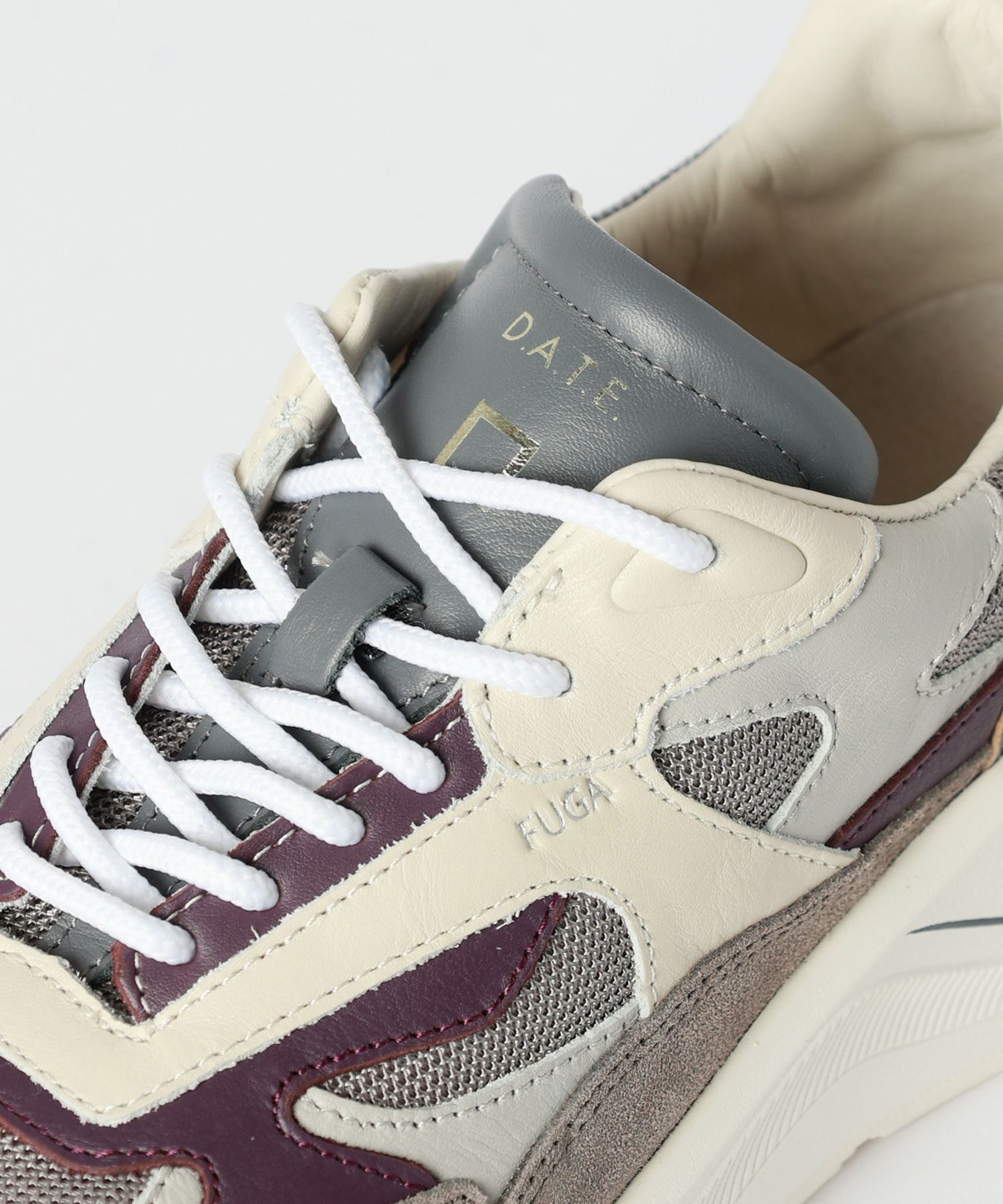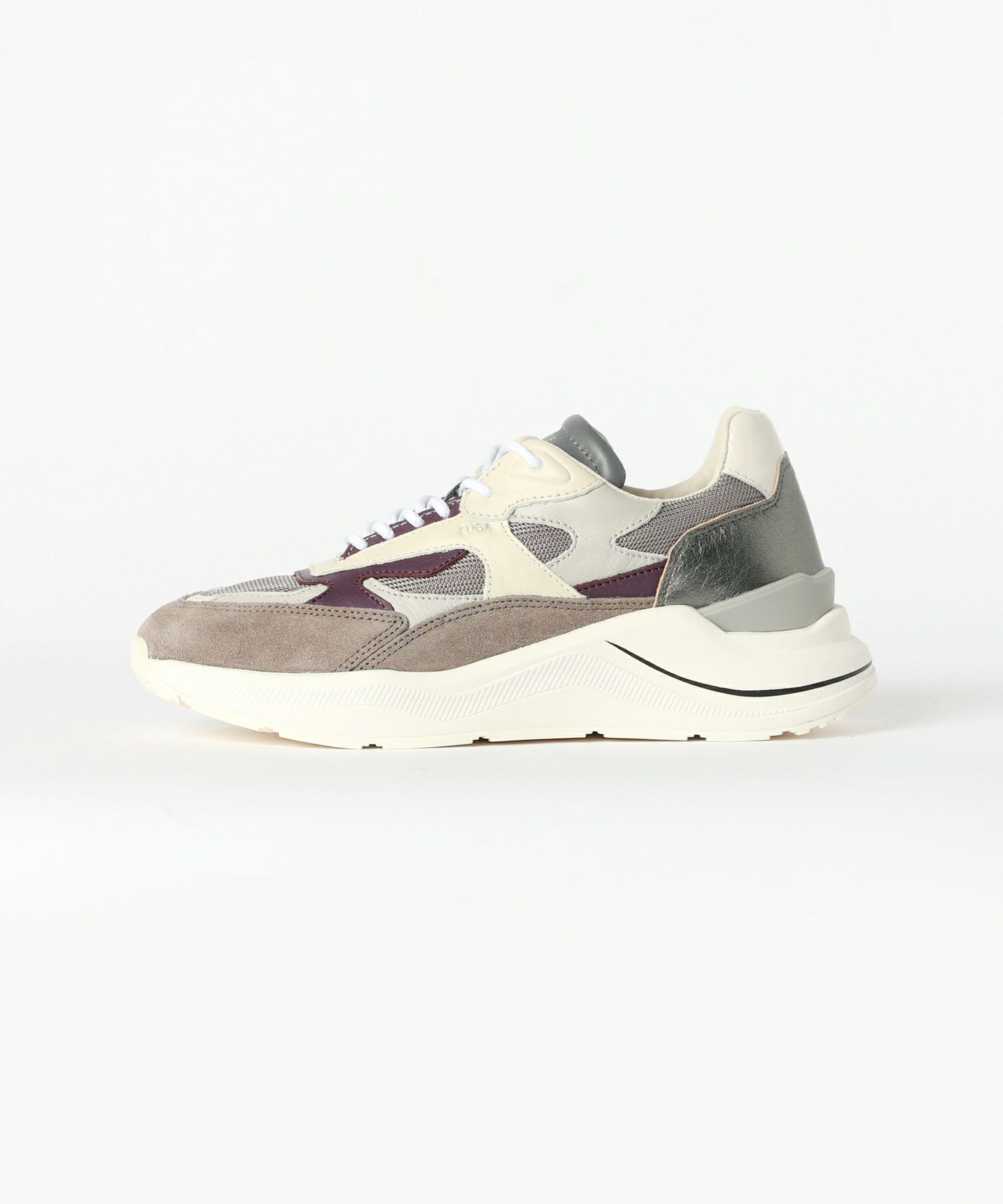【デザイン】D.A.T.E.(デイト)のスニーカー。ブランドアイコンモデルFG(エフジー)です。 グレーをベースにした落ち着きのある配色に、 メタリックパーツがアクセントのFGスニーカー。 スエードとメッシュを組み合わせた異素材デザインで立体感を表現しています。 ヒールに施されたメタリックパネルが都会的な印象をプラス。 2.5cmのジェルインソールと約5cmの軽量アウトソールで快適な 履き心地とスタイルアップを実現。通気性の高いアッパーで長時間の着用も快適に。 シンプルで洗練されたカラーは幅広いコーディネートにマッチします タウンユースから大人カジュアルまで活躍する万能デザインのスニーカーです。