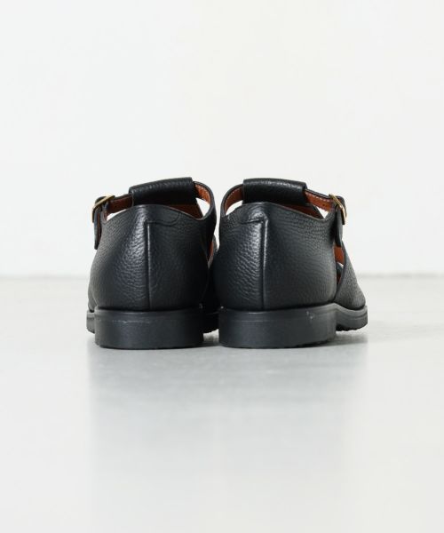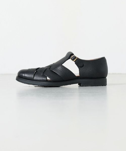 【デザイン】 レザーのシボ感が上品な雰囲気のグルカサンダル。ゴールドの金具がデザインアクセントとなり、全体の印象を締めてくれます。柔らかい革質で履き始めから足馴染の良い着用感。肌の露出が少ない為、通常の革靴感覚で着用が可能です。アウトソールはラバー素材となっており、しっかりとしたグリップ感。夏場に最適な大人顔の1足です。