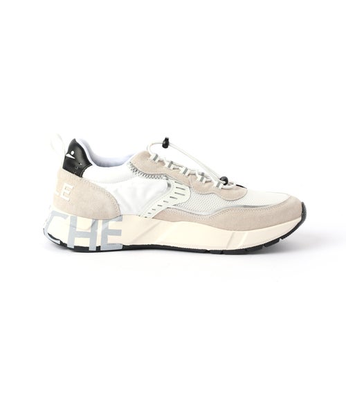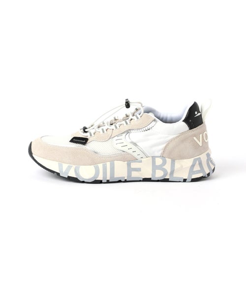 【デザイン】 VOILE BLANCHE(ボイルブランシェ)のスニーカー。レザーとナイロンを組み合わせたアッパーは、上品さと軽快さを両立。イタリアンカーフレザーを使用し、どんなスタイルにもマッチする仕上がりです。立体形状のカップインソールと軽量EVAソールで、履き心地は抜群。厚みのあるソールとバックシャンに施されたロゴデザインが、足元に程よいアクセントを加えます。さらにトレッキングシューズをイメージしたプラスチックアイレットとレース、スエードのヒールカウンターに立体ロゴをあしらい、細部までこだわったデザイン。クイックシューレース搭載で、着脱もスムーズです。カジュアルスタイルにはもちろん、スポーティなコーディネートやモードな着こなしにも映える、大人のための一足です。