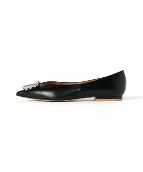 【デザイン】 PIPPICHIC(ピッピシック)のフラットシューズ。定番人気の「ANNA V JEWERLY」。 クラシカルなカウレザーが足の甲を美しく、エレガントに演出してくれます。 ビジューがあしらわれたスクエアバックルが目を惹く華やかなフラットシューズ。きらっと輝くビジューと甲のVカットが女性らしい足元を演出してくれます。高級感のあるデザインながらも、フラット仕様で歩きやすくデイリーに履きやすいのも魅力。着こなしのアクセント使いにぴったりなシューズです。
