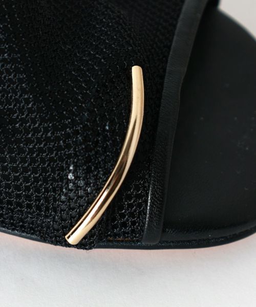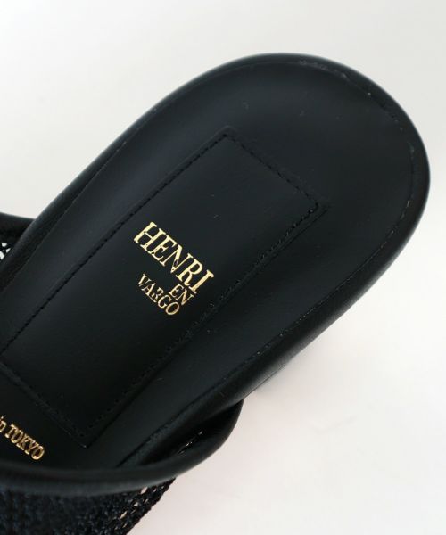 【デザイン】 HENRI EN VARGO(ヘンリエンヴァーゴ)のサンダル。メッシュ素材にメタルがアクセントとなるデザイン。足もとのジュエリーのように、ゴールドのパーツが目を惹くサンダルです。透け感やメタルなど異なる素材で他にはないアプローチに。メタリックカラーのヒールも、後ろ姿のアクセントに。サムリングと程よい高さのヒールで安定感を、涼しげな素材で快適な履き心地のサンダルです。ソールは全体の佇まいと調和しつつ、現代の生活にフィットする合成底を使用。一足一足職人により、ハケ塗りと磨きをかけ、裏側からも美しい一足となっております。