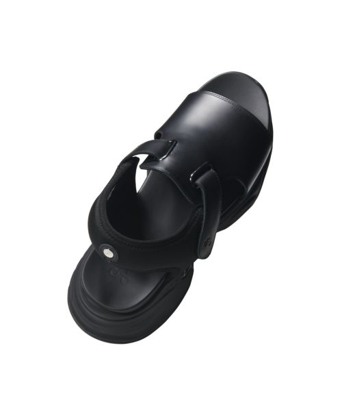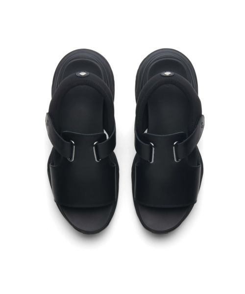 【デザイン】OAO(オーエーオー)のサンダル。 肌理と艶の美しいカーフレザーと、足首を優しくホールドするネオプレンを組み合わせたレザーサンダルです。オーセンティックなオープントゥのデザインを採用し、通気性に優れた、爽やかな着用感に。 Vibram社のProjectXソールをベースに、クッション性が足にフィットするモールデッドEVA天板を組み合わせることで、厚さ7cmに関わらず返りの良い、心地の良い履き心地を実現しました。 サイドのレザーベルトにより、フィット感の調整が可能となっております。 装飾的な要素が極限まで取り除かれた、時代に左右されない存在感を放ち続けるその1足は、浮遊するような重力から解放される心地よい感覚をもたらします。