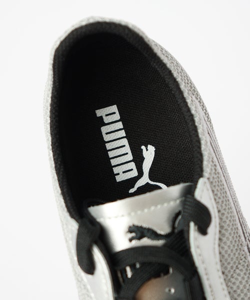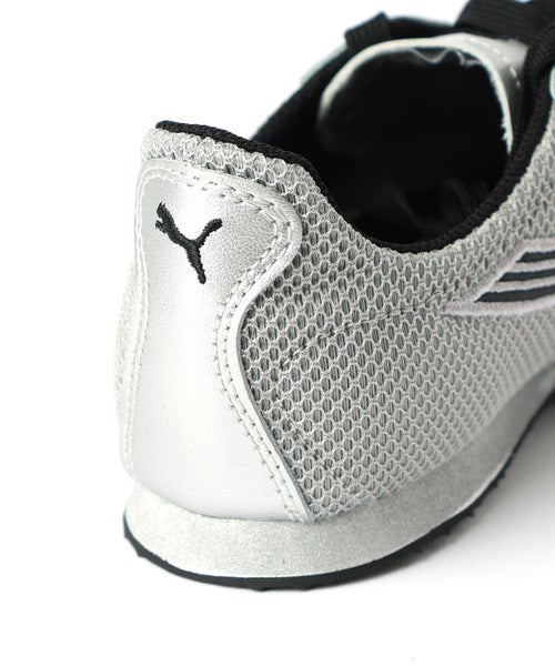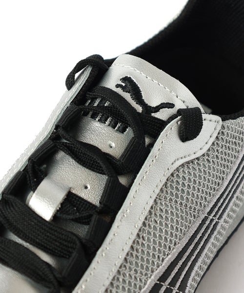 【デザイン】PUMA(プーマ)のスニーカー。2000年代のランニングスパイクから着想を得た、スピード感あふれるロープロファイルシルエットが特徴の一足です。トラック由来のシャープなフォルムに、メタリックメッシュのアッパーを掛け合わせることで、ストリートでも際立つ存在感を発揮。ブランドを象徴するフォームストリップがデザインを引き締め、スポーティさとモード感を両立しています。細身ですっきりとしたラインのため足元に抜け感とエッジをプラスし、シンプルなコーディネートも一気に旬な印象へと導きます。
