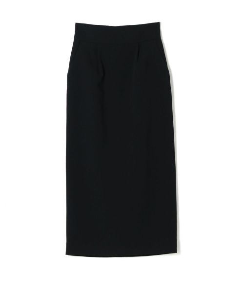 【デザイン】Mame Kurogouchi(マメ クロゴウチ)のスカート。 シンプルなフォルムのIラインスカートは、腰下にタックを配すことでヒップに優しく沿い、バックスリットのデザインが足捌きを軽やかに演出してくれます。