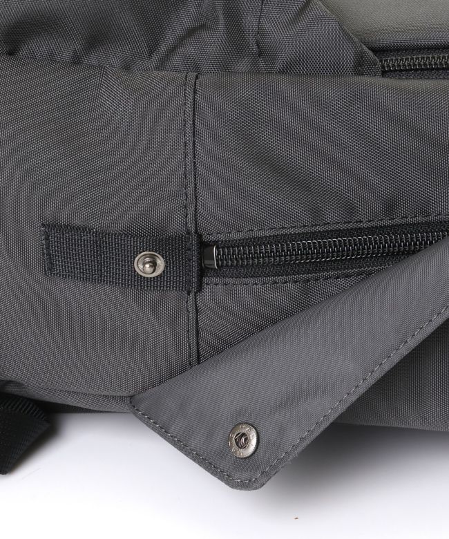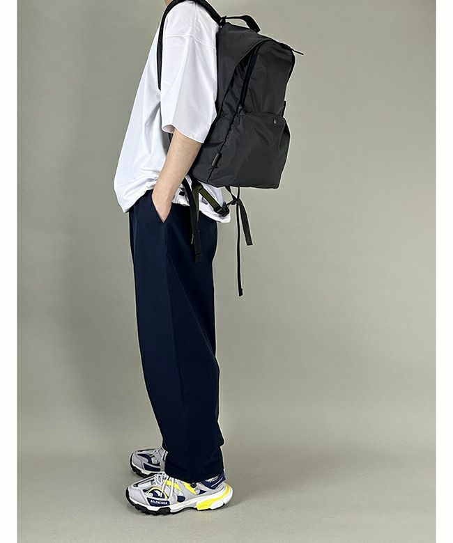 【デザイン】 上質でハリのあるナイロンボディを採用したzattu(ザッツ)のリュック。以前のモデルよりも素材を薄くし、アルミパーツなどを排除することでシンプルで軽量に仕上げ、さらにサイズアップしたリニューアルモデル「TYKE-LQ」バックパック。荷物の揺れを軽減する腰のベルトは、左右カラーが異なりアイコン的な役目をしています。雨天時の使用も想定されたトップ部分に設置されたカバーや、ダブルファスナー、トップについた持ち手は調節ができたりと、必要な機能をシンプルでクリーンなデザインに昇華したzattu(ザッツ)ならではのリュックです。
