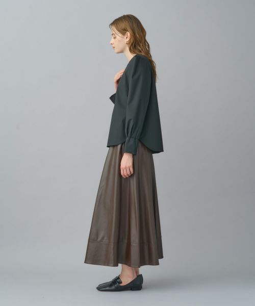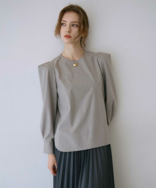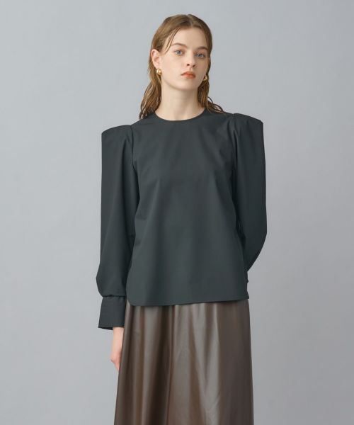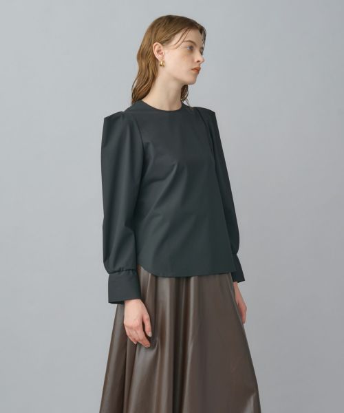 今季注目のパワーショルダーを取り入れたデザイン。肩部分にはタックを施し、立体的でありながらも張りすぎないシルエットに仕上げています。すっきりとした身頃はスカートにもパンツにも合わせやすく、オンオフ問わず活躍する万能ブラウスです。