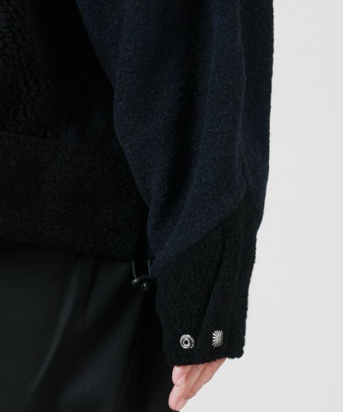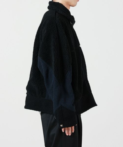 【デザイン】 TOGA VIRILIS(トーガ ビリリース)のブルゾン。ゆったりとしたシルエットにボア素材を組み合わせることで、立体感と温かみを持たせたデザインが特徴です。袖口や裾に施された異素材のナイロン切替がアクセントとなり、スポーティーさとモード感を絶妙に融合。シンプルながらもディテールにこだわった洗練されたフォルムが、個性を光らせながらも幅広いスタイリングにマッチする一着です。