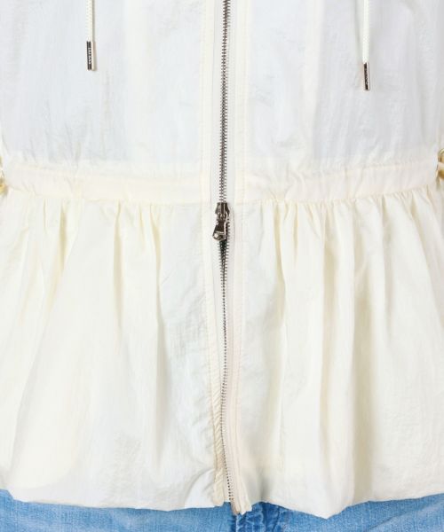 【デザイン】TATRAS(タトラス)のコート。 人気のモデルのフード付きミドル丈ブルゾンを長袖にアップデート。弾力性とハリ感のある超軽量のナイロンワッシャー素材を使用し、フードをボディと一体化。フードの付け根部分は首元にくるよう設計し、袖部分は少し肩を落としたデザインにすることで、ギャザーによる肩回りのボリューム感を抑えています。ウエスト脇に配したドローコードでギャザーの調整が可能です。コンパクトな丈感ながらも、生地の洗い加工によるシワ感を生かして女性らしいシルエットに仕上げました。撥水効果があり、羽織としても最適。デイリー使いしやすい一着です。