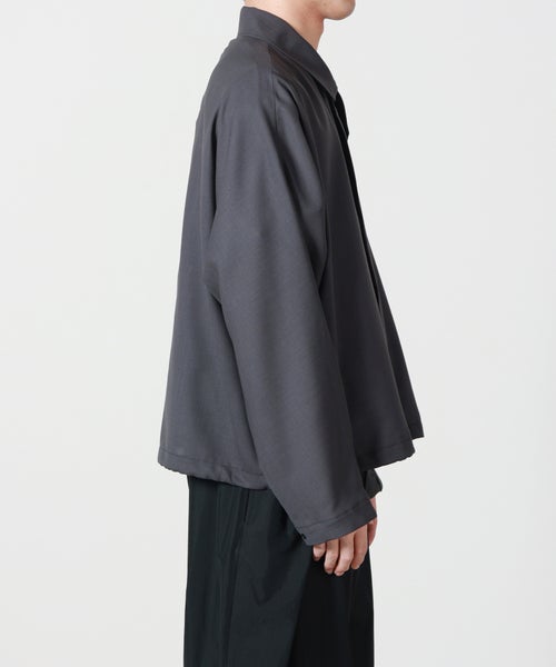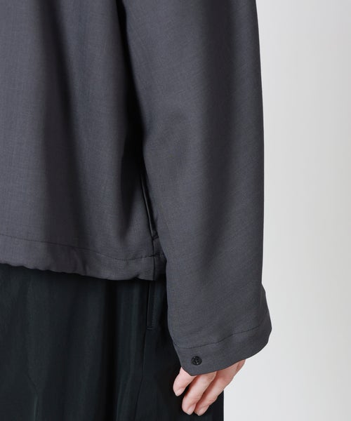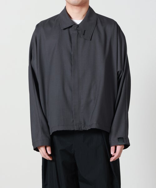 【デザイン】 N.HOOLYWOOD(エヌハリウッド)のドルマンスリーブショートブルゾン。ミニマルなデザインの中に、ブランドらしい構築的なパターンワークを落とし込んだ一着です。フロントは比翼仕様のファスナー開きにすることで、すっきりとした洗練された表情に仕上げています。ファスナーヘッドにはオリジナルのレザーパーツを採用し、さりげないアクセントをプラス。襟にはタブを備えており、留めることでスタンドカラーとしても着用可能です。肩から後身頃の中心で接いだドルマンスリーブ仕様により、立体的で動きやすい設計に。両サイドにはスラッシュポケットを配置し、実用性も兼ね備えています。裾にはスピンドルコードを内蔵し、シルエットの調整が可能。左袖にはN.HOOLYWOOD COMPILEのネームタグを配し、ブランドらしいアクセントに。BLACKを除くカラーには配色ステッチを施し、奥行きのある表情を演出しています。スクエアカットの裾と、ゆとりを持たせたボックスシルエットが特徴。リラックス感がありながらもバランスの取れたシルエットで、幅広いスタイリングに取り入れやすいブルゾンです。