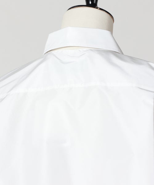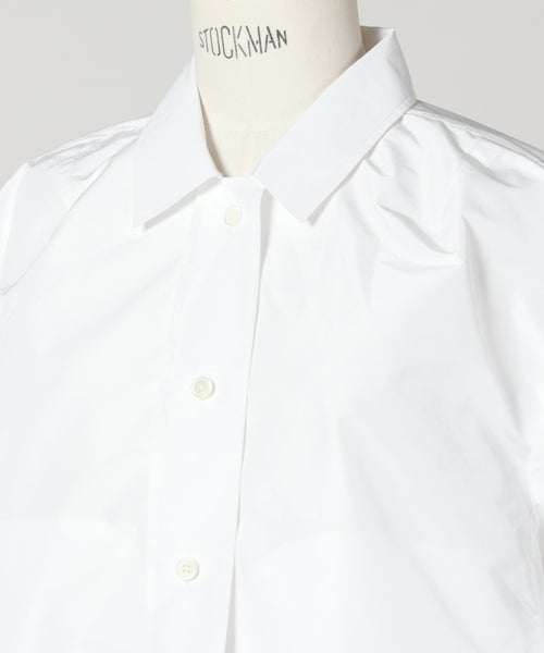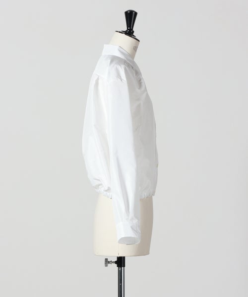 【素材】 ポリエステル100%のテックファイユ素材を使用。軽量でハリのある風合いが特徴で、美しいシルエットをキープします。さらりとした肌触りで快適な着心地を実現し、シワになりにくく扱いやすいのも魅力。程よい光沢感が上品さを引き立て、機能性と洗練された表情を兼ね備えた素材です。