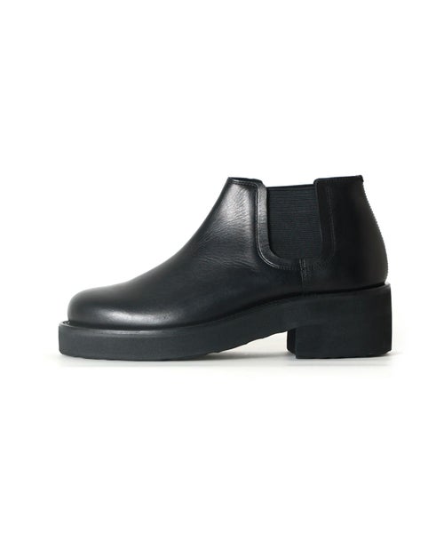 【デザイン】foot the coacher(フットザコーチャー)のブーツ。 伝統的なサイドゴアブーツをベースに、極力切り返しを省いたミニマルなデザインが特徴。無駄を削ぎ落とすことで素材の魅力を際立たせ、スタイリッシュなラインを実現しました。シンプルでありながら高級感が漂う一足は、カジュアルからフォーマルまで幅広いスタイリングに対応可能です。