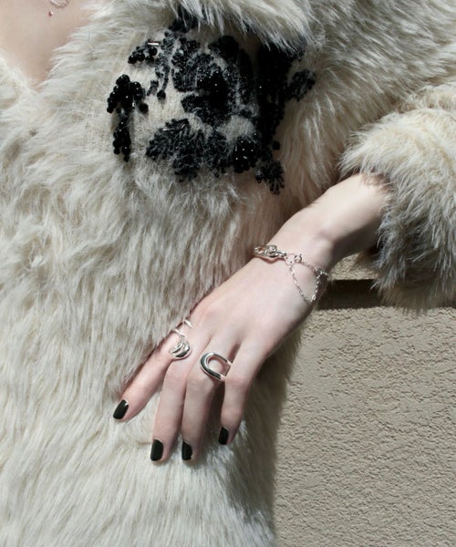 「Fibula chain bracelet」は、どの箇所にもチェーンを繋ぐ事が出来るため、サイズ調整が幅広く可能な商品となっております。