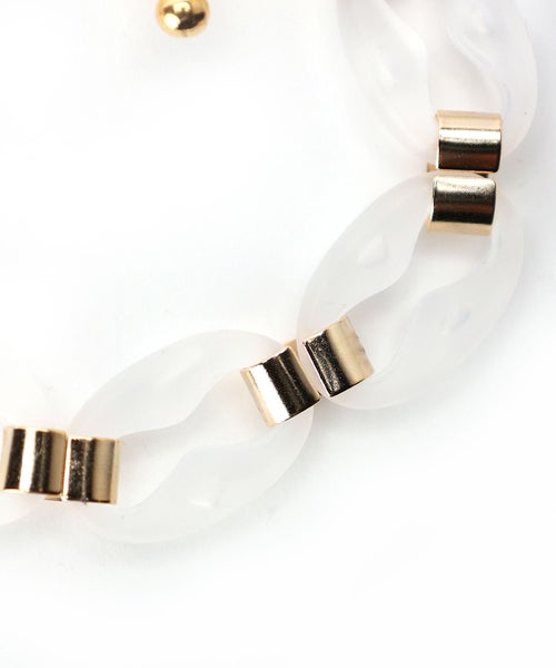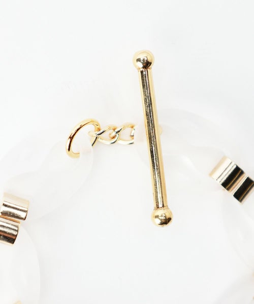 【デザイン】ADER.bijoux(アデルビジュー)のブレスレット。イタリアのアクリルチェーンパーツをつなぎ合わせたブレスレットです。 クリア素材が夏にぴったり、爽やかな印象。つなぎのメタルがアクセントの、どんなコーディネートにも合わせやすいデザインです。