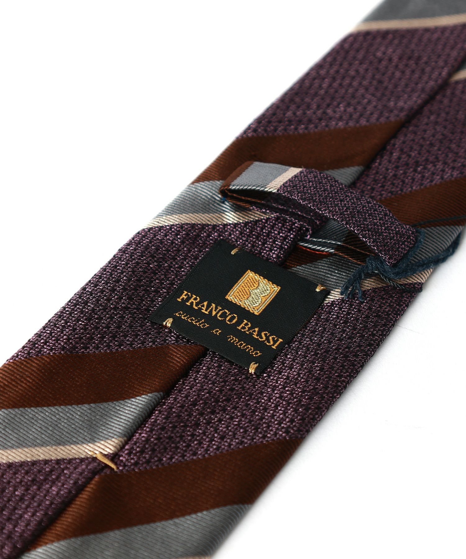 1973年にイタリア北西部にある世界的に有名なシルクの生産地、コモに設立された「FRANCOBASSI」。ファミリー経営を基盤とし、手裁断と手縫製による生産と時代の空気を取り入れるトレンド性の高さが特徴。シーズン毎に約300種類ものデザインを発表し、冬はウールとカシミヤ、夏はシルクやリネンなど素材にこだわったタイ作りを手がける。現在も縫製は100%イタリア・コモで行なわれているという。