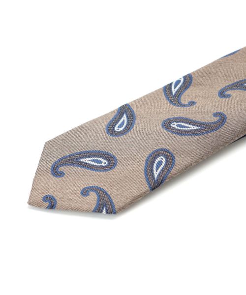【デザイン】 ペイズリーの柄が特徴的なシルクタイ。配色が落ち着いているため、ビジネスシーンのVゾーンを程よく華やかに演出してくれます。